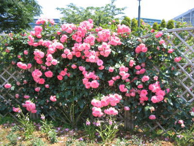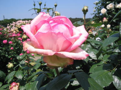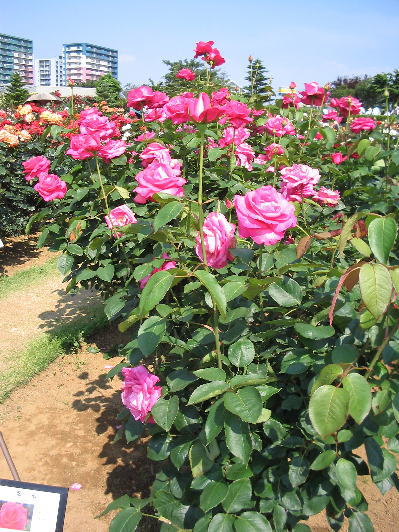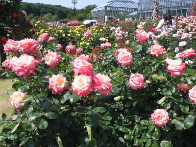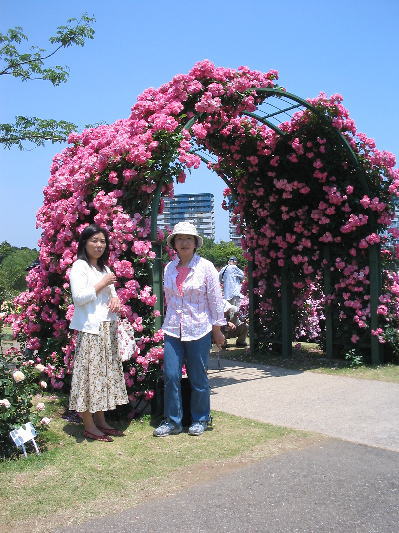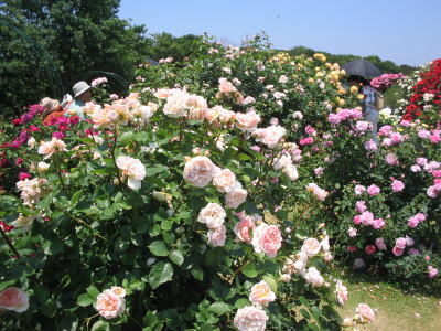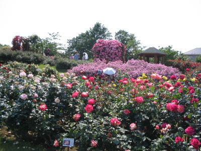 | 急遽、話が決まり京成薔薇園に行ってきました。とてもお天気が良く頭が熱くなってしまうほどでした 途中、お昼にレストランでランチをして三時のおやつにはバラのソフトクリームを食べちゃいました。 帰りにお友達はバラの苗を購入、私は木酢と碧露を購入した。 一日、バラ園を楽しんで来ました。 |