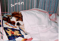 | 舌なめずりですか〜 | セントバーナードの様な顔 | 寒い日は、毛布を掛けておねんね |
