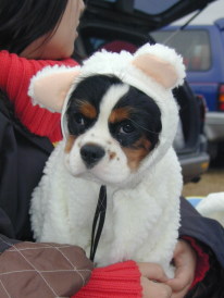 | 羊の親子に扮した我が家のキングとウィッシュミィ | ||