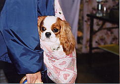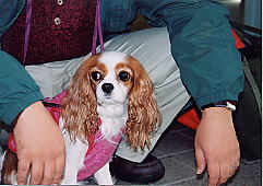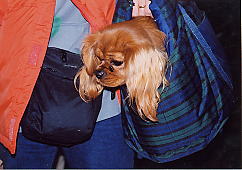 | その後、ショーに出るお友達のワンちゃんのグルーミングのお手伝いをしたりしてショーが始まるまで過ごしました。 |