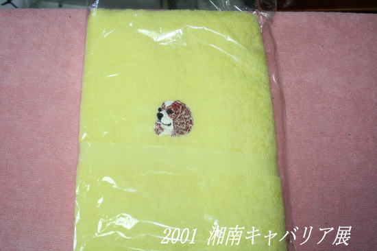 | 初めての参加 キャバリアの絵皿 | キャバリア刺繍入りのバスタオル こちらは見学のみでしたが参加者に頂きました |