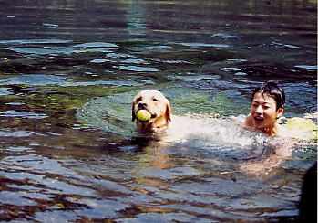 | この日のもう1つの楽しみ、JKC「愛犬とふれあいコンテスト」 私の写真が会場で飾られました。 |