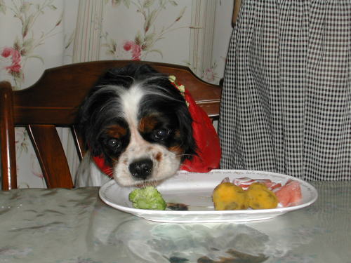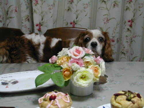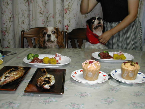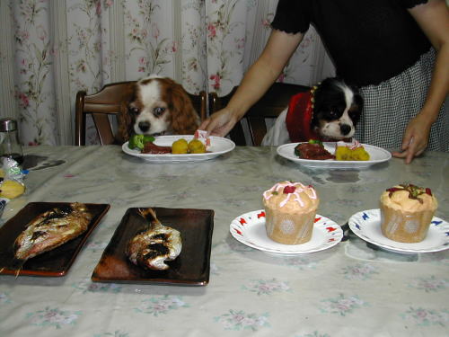 | 少し遅れましたが16日にお誕生日のお祝いをしました キングもご馳走を前にすると目が輝きます |