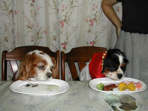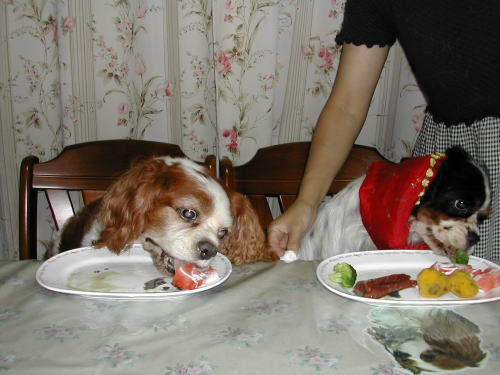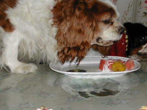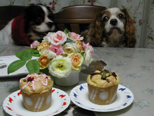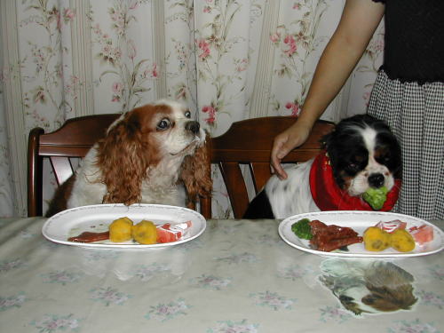 | 召し上がれの声にキン、ウィ、食べだすが圧倒的にキングのスピードが速く、ウィちゃんが横を向いてる間に盗み食い | |
