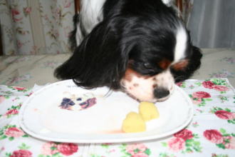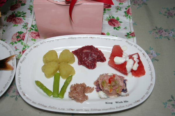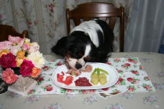 | アレルギー体質のウィちゃんは日ごろは医療用のドッグフードを食べております。 特別な日だけの食事です。 |