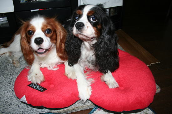 | お兄ちゃんがハートのベッドを買ってくれました。ブレ君が気に入ったようです(笑) |